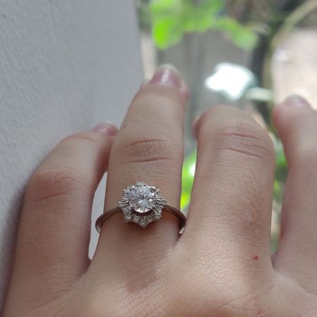 Hand Made 14K White Gold Ring with a total of 0.58ct. of Si2 G-h Diamond Center Stone has 0.50ct. For Wedding |