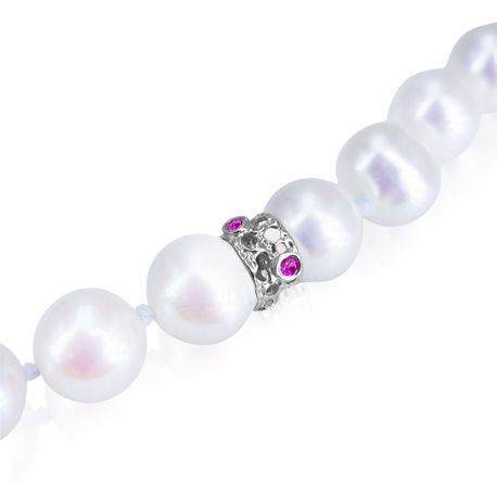 14k white gold 0.058ct. PINK saphir 6.50mm for 8mm - 14mm pearl size Divider With Gemstone Rondels |