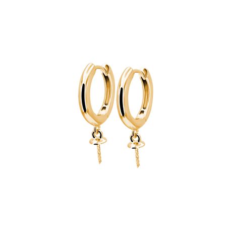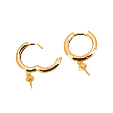 14k yellow gold ct. Shiny Finish Dangling 12mm Gypsy Earrings Non Diamond Pearl Earrings12mm for Any pearl size |