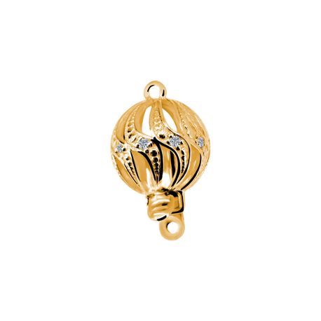 The Pearl Clasp AW-A38 in 14K yellow gold offers a stunning ball-shaped design with a shiny finish. Accented by 0.05ct SI2 G-H diamonds, this 10mm clasp is versatile and suits pearls of any size. Featuring a safety tongue closure, it ensures secure fastening while adding a luxurious touch to your single-row pearl necklaces. Crafted with precision, this clasp blends timeless elegance with modern design, making it ideal for both casual and formal occasions. Purchase from a trusted manufacturer for guaranteed quality.