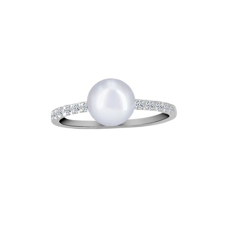 14k white gold 0.12ct. SI2 G-H Pearl Diamond Ring Half eternity for 8.50mm - 9.50mm pearl size