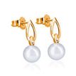 14k yellow gold 0.02ct. SI2 G-H Diamond Shiny Finish Stiff Dangling Post & Butterfly Diamond Pearl Earrings for Any pearl size |