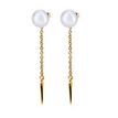 14k yellow gold Shiny Finish Dangling 40mm Post with earring jacket Spike dangle Pearl Earrings For Any size pearls