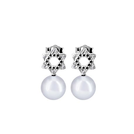 14k white gold 0.06ct. SI2 G-H Diamond Pave Stiff 8mm Magen David/ Jewish Star Post & Butterfly 8mm David Star Diamond Pearl Earrings for Any pearl size