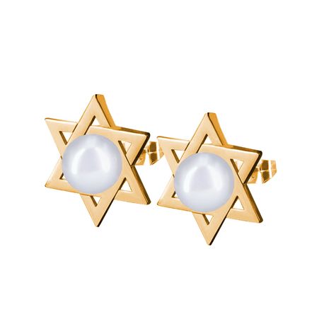 14k yellow gold Shiny Finish On the Ear 17.50mm Post & butterfly Star of david Pearl Earrings For 7mm - 9mm size pearls