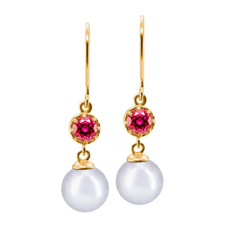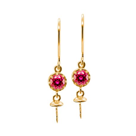 14k yellow gold NATURAL 0.62ct. RED Ruby Bezel Settings Dangling Ruby Pearl Earrings for Any pearl size