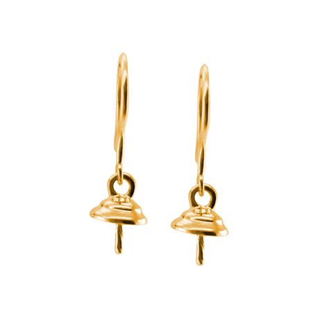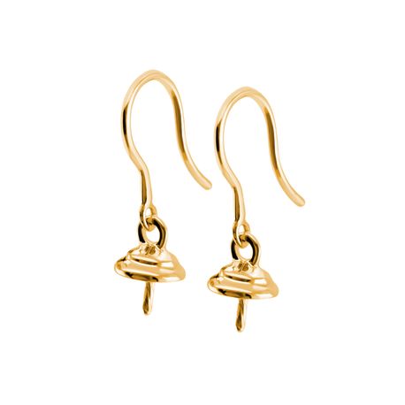 14k yellow gold Shiny Finish Dangling Shephard hook Non Diamond Pearl Earrings For 6mm - 10mm size pearls