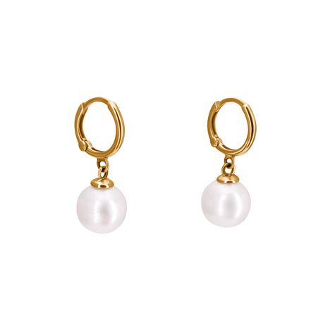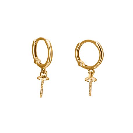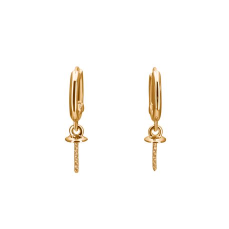 14k yellow gold Shiny Finish Stiff Dangling 10mm Gypsy closure Non Diamond Pearl Earrings For Any size pearls