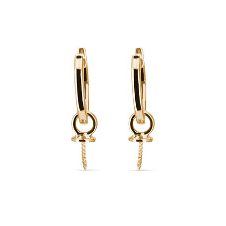 14k yellow gold Shiny Finish Dangling 13mm Gypsy Can take out pearls French wire Non Diamond Pearl Earrings For Any size pearls