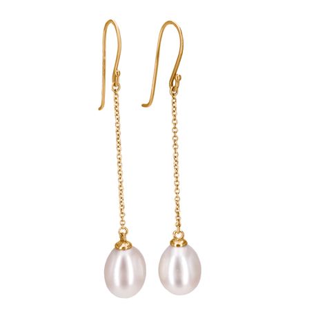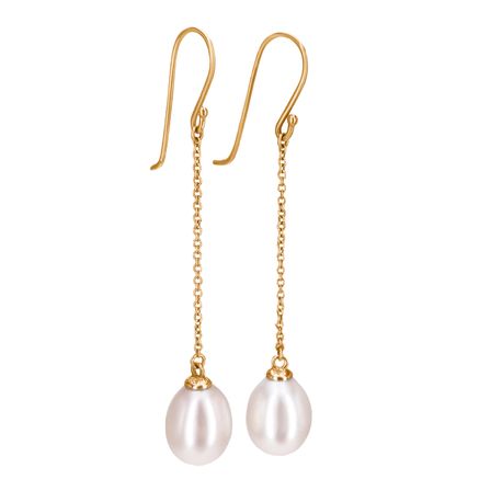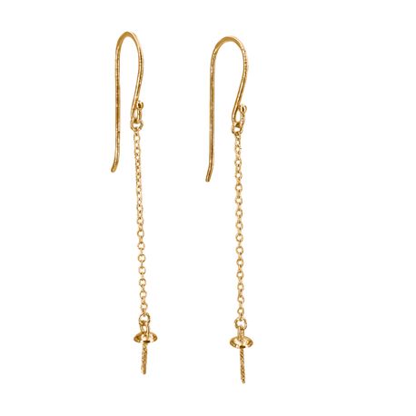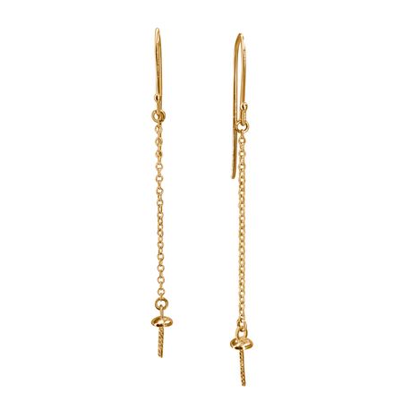 14k yellow gold ct. Shiny Finish Dangling Non Diamond Pearl Earrings Dangling With Chain Shephard Hook for Any pearl size