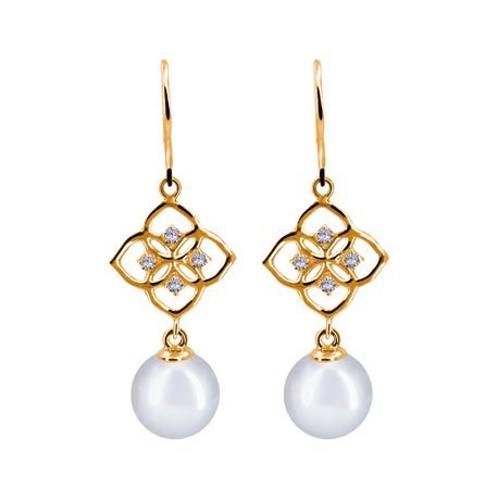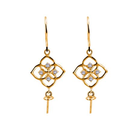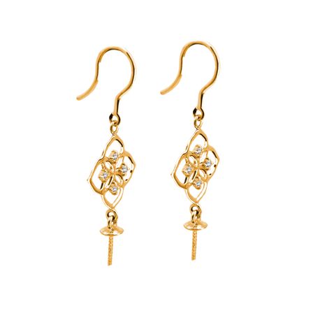 14k yellow gold 0.12ct. SI2 G-H Diamond Shiny Finish Dangling 12.50mm x 26mm Shephard Hook Ethnic Motiv 12.50mm x 26mm Diamond Pearl Earrings for Any pearl size