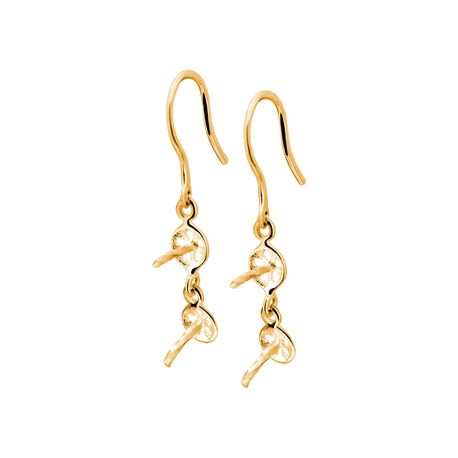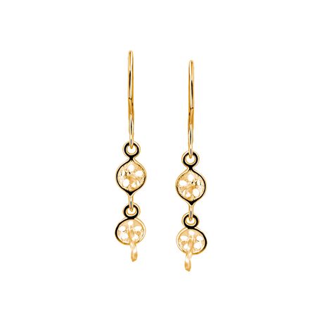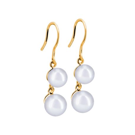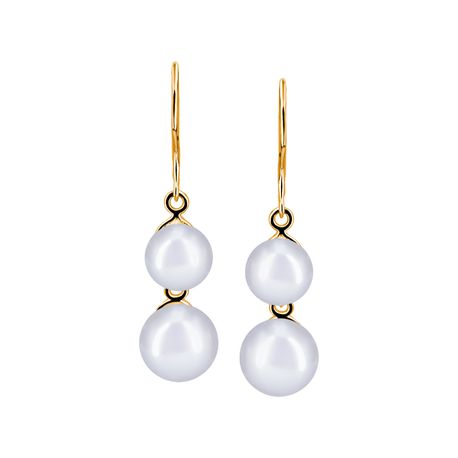 14k yellow gold Shiny Finish Dangling Double pearl drop Dangle earrings Non diamond earrings Pearl Earrings For 6mm - 8mm size pearls