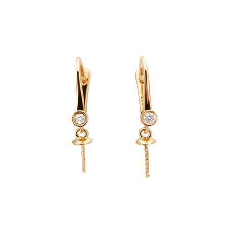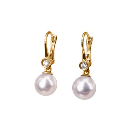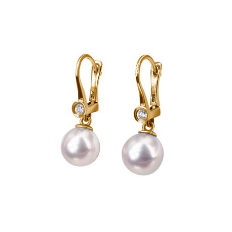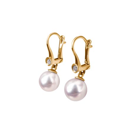 Classic Leverback Diamond Pearl Earrings with a shiny finish. |
