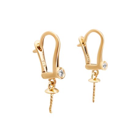 14k yellow gold 0.06ct. SI2 G-H Diamond Shiny Finish Dangling Diamond Pearl Earrings Dangling Leverback for Any pearl size