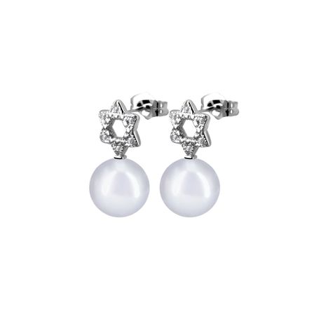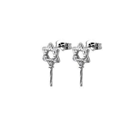 14k white gold 0.06ct. SI2 G-H Diamond Pave Stiff 8mm Magen David/ Jewish Star Post & Butterfly 8mm David Star Diamond Pearl Earrings for Any pearl size