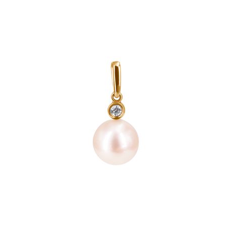 14k yellow gold 0.04ct. SI2 G-H Diamond Diamond Pearl Pendant for Any pearl size Run through |