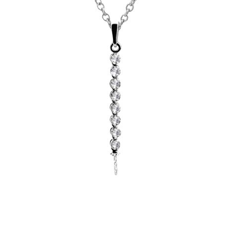 14k white gold 0.135ct. SI2 G-H Diamond Pave DanglingPave Dangling 2.50mm x 27mm Diamond Pearl Pendant for Any pearl size