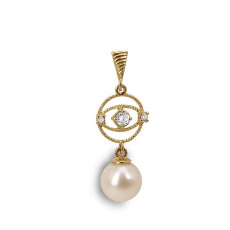 14k yellow gold     0.12ct. SI2 G-H Diamond Dangling Pearl Pendant With Diamonds for Any pearl size