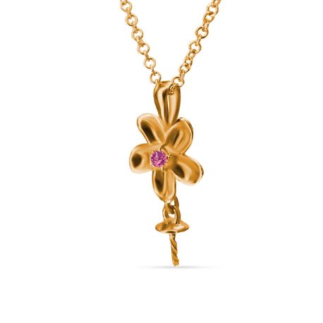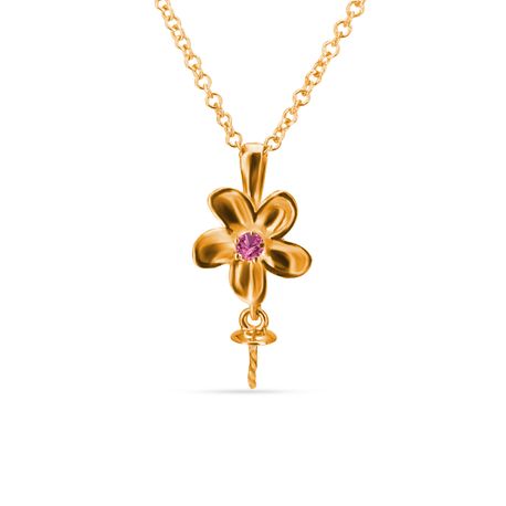 14k yellow gold 0.07ct. Sapphire Shiny Finish Stiff Dangling 10mm Flower Pink Sapphire Pearl Pendant for Any pearl size |