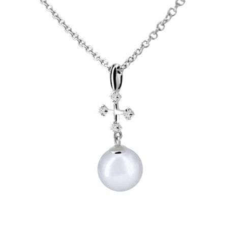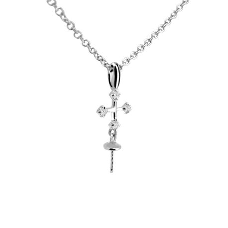 14k white gold     0.12ct. SI2 G-H Diamond Prong Setting Stiff Dangling 9mm Square Cross Diamond Pearl Pendant for Any pearl size