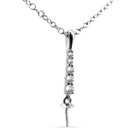14k white gold 0.195ct. SI2 G-H Diamond Pave Dangling 3mm Diamond Pearl Pendant for Any pearl size |