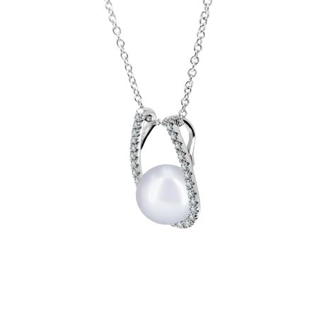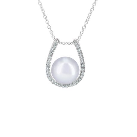 18k white gold 0.30ct. SI1 G-H Diamond Shiny Finish Horseshoe Horseshoe Diamond Pearl Pendant for 8 - 10 Mm pearl size