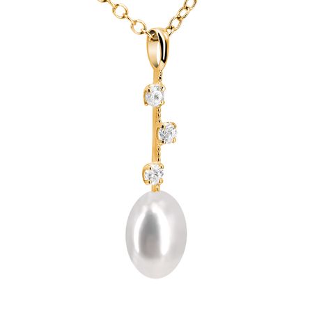 14k yellow gold 0.165ct. SI2 G-H Diamond Shiny Finish Stiff Dangling 21mm Diamond Pearl Pendant for Any pearl size