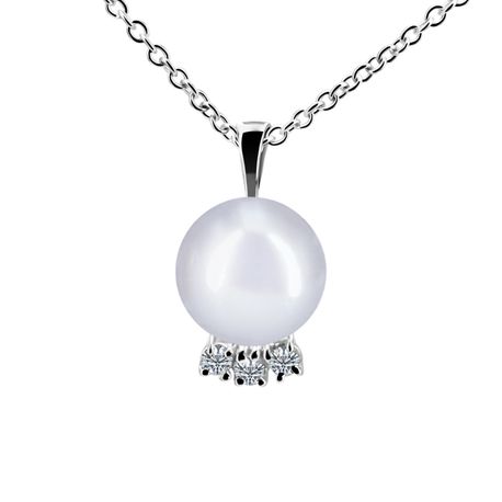 14k white gold 0.15ct. SI2 G-H Diamond Shiny Finish Stiff Dangling Diamond Pearl Pendant for 9mm - 11mm pearl size
