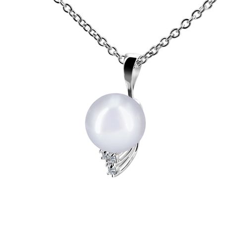 14k white gold 0.15ct. SI2 G-H Diamond Shiny Finish Stiff Dangling Diamond Pearl Pendant for 9mm - 11mm pearl size