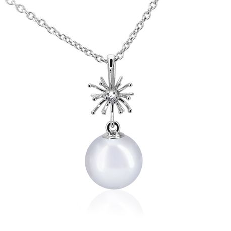 14k white gold 0.03ct. SI2 G-H Diamond Design Stiff DanglingSpecial Design 7.50mm Diamond Pearl Pendant for Any pearl size