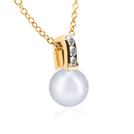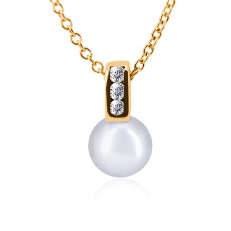 14k yellow gold 0.12ct. SI2 G-H Diamond Pave Stiff Dangling 3.50mm Pearl Pendant for 10mm - 11mm pearl size