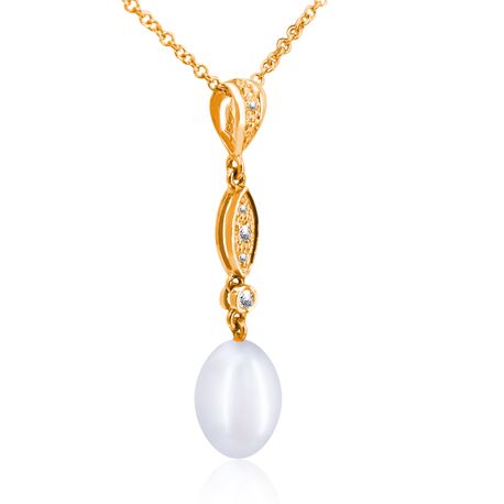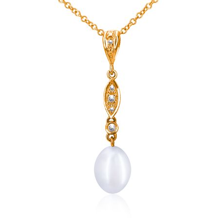 14k yellow gold 0.0675ct. SI2 G-H Diamond Pave Dangling 3.50mm Diamond Pearl Pendant for Any pearl size |