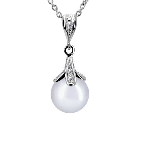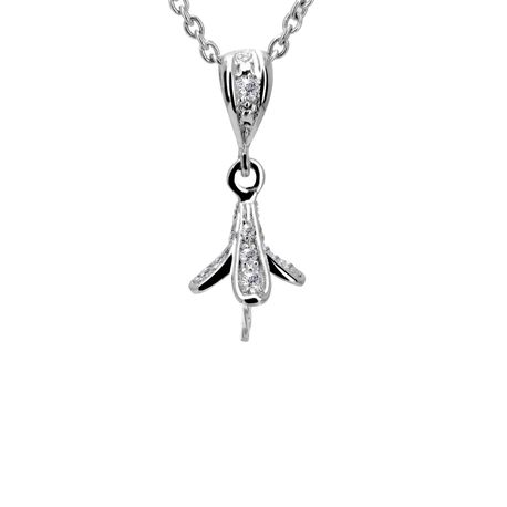 14k white gold 0.1175ct. SI2 G-H Diamond Pave DanglingAlso good for Baroque shaped pearls Run Through 8.50mm Diamond Pearl Pendant for 10mm - 13mm pearl size
