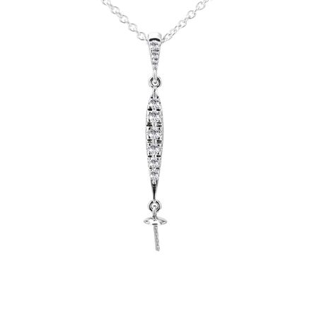 14k white gold     0.1325ct. SI2 G-H Diamond Pave DanglingPave 3mm x 31mm Diamond Pearl Pendant for Any pearl size