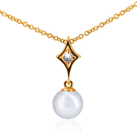 14k yellow gold 0.09ct. SI2 G-H Diamond Prong Setting Stiff Dangling"Star"   6.50mm Diamond Pearl Pendant for Any pearl size