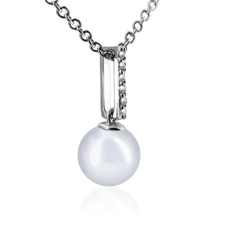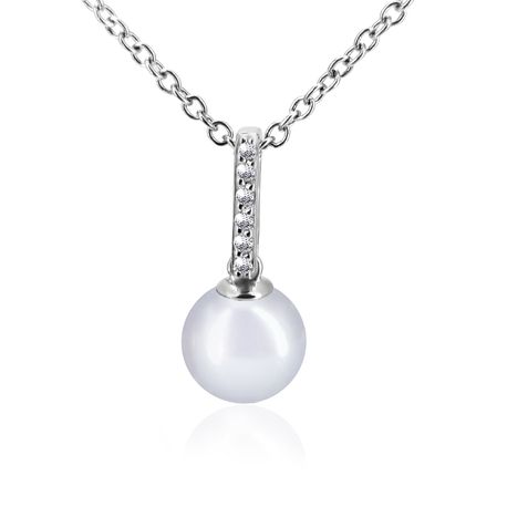 14k white gold 0.06ct. SI2 G-H Diamond Pave Stiff Dangling 1.50mm Diamond Pearl Pendant for Any pearl size |