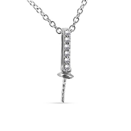 14k white gold 0.06ct. SI2 G-H Diamond Pave Stiff Dangling 1.50mm Diamond Pearl Pendant for Any pearl size