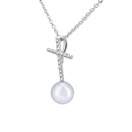Our Diamond Pearl Pendant, shaped as an elegant cross, is a unique and spiritual piece of jewelry. Designed to accommodate pearls of any size, it features a luxurious pave finish, with diamonds meticulously set to illuminate the pendant's intricate design. This pendant's shape symbolizes faith and grace, making it a meaningful accessory or gift. The bail from behind closure provides a seamless look, ensuring the focus remains on the pendant's beauty. Available in yellow, white, or rose gold, this pendant offers versatility and sophistication, suitable for various occasions and styles. It is a perfect blend of spirituality and elegance, making it a cherished addition to any jewelry collection.