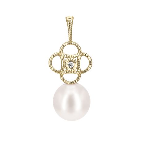14k yellow gold 0.0075ct. SI2 G-H Diamond Diamond Pearl Pendant for Any pearl size |