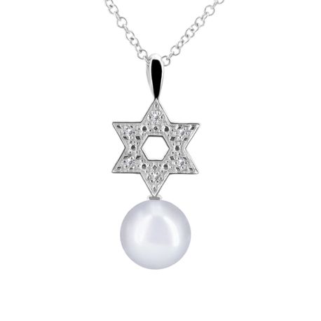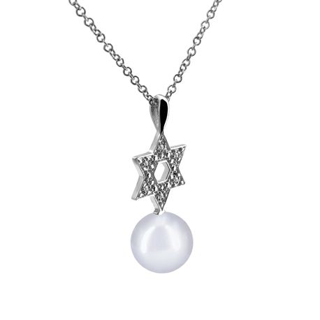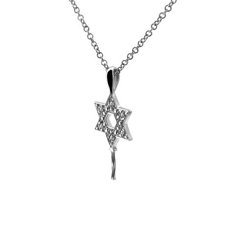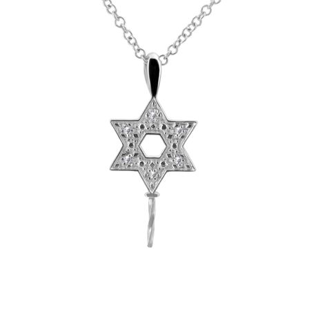 14k white gold 0.03ct. SI2 G-H Diamond Semi-Pave Stiff DanglingSemi Pave "David Star" 11mm x 18mm David Star Diamond Pearl Pendant for Any pearl size