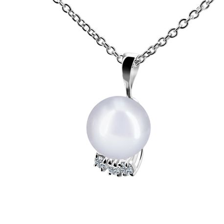14k white gold 0.15ct. SI2 G-H Diamond Shiny Finish Stiff Dangling Diamond Pearl Pendant for 9mm - 11mm pearl size