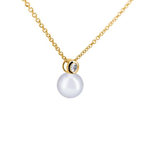 14k yellow gold NATURAL 0.07ct. SI2 G-H Diamond Bezel Settings StiffSimple Bezel Settings Run-Through 4.25mm Diamond Pearl Pendant for Any pearl size