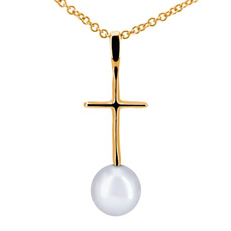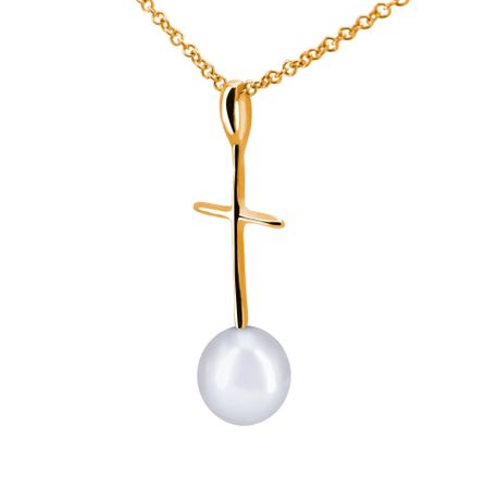 Shiny Cross Pearl Pendant in Gold