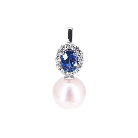 14k white gold 0.95ct. BLUE Sapphire Pearl Pendant With Diamonds for Any pearl size With semi - precious stones Stiff dangling |