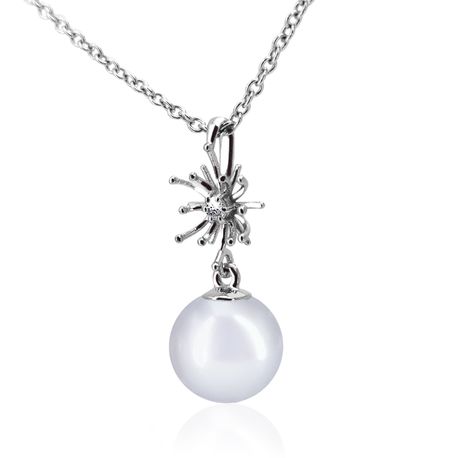 14k white gold     0.03ct. SI2 G-H Diamond Design Stiff DanglingSpecial Design 7.50mm Diamond Pearl Pendant for Any pearl size
