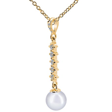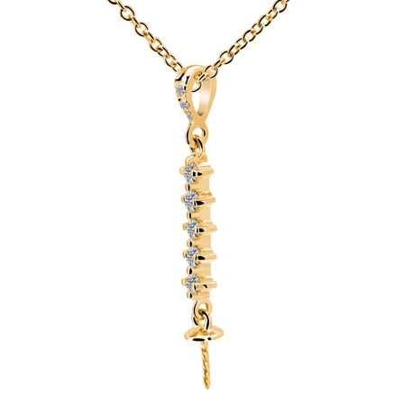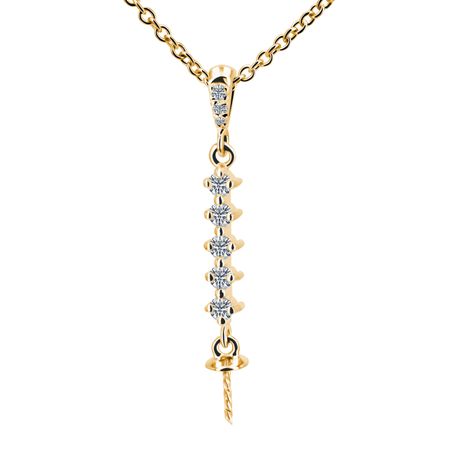 14k yellow gold 0.1975ct. SI2 G-H Diamond Shiny Finish Stiff Dangling 36mm Diamond Pearl Pendant for Any pearl size