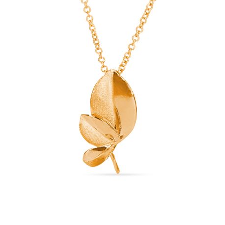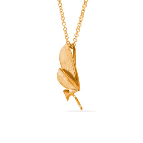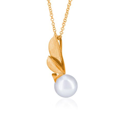 The design of the pendant's gold findings further adds to its captivating allure. Inspired by the natural beauty of leaves, the gold findings perfectly complement the pendant's organic aesthetics. Paired with the innovative bail from behind closure, it not only secures the pearl but also introduces a graceful fluidity to the design, adding to its overall charm.