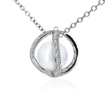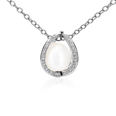 14k white gold 0.20ct. SI2 G-H Diamond Pave DanglingCage 12mm Diamond Pearl Pendant for 10mm - 12mm pearl size