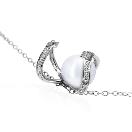 14k white gold 0.20ct. SI2 G-H Diamond Pave Dangling Cage Diamond Pearl Pendant for 10mm - 12mm pearl size |