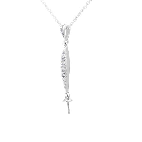 14k white gold 0.1325ct. SI2 G-H Diamond Pave DanglingPave 3mm x 31mm Diamond Pearl Pendant for Any pearl size